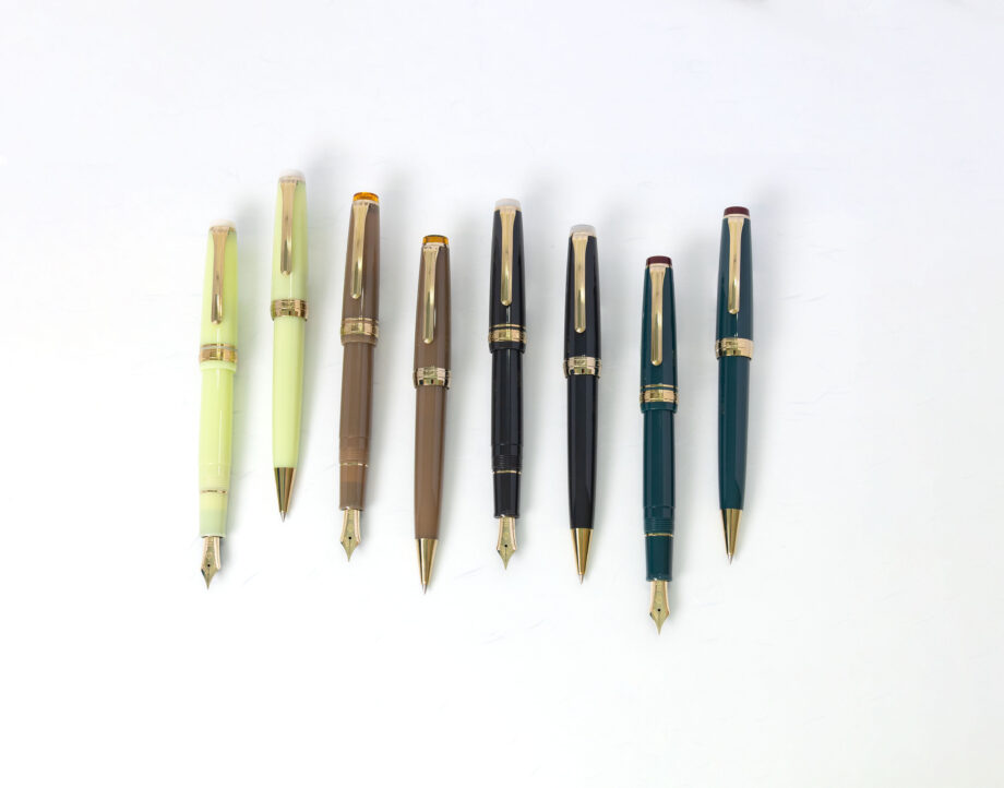 This new collection showcases a line-up of fountain pens featuring our 14K gold nib acclaimed for its writing comfort, and twist type ballpoint pens are both available in 4 different colors.